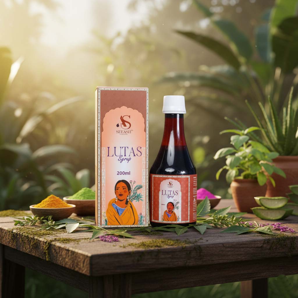 Lutas Syrup is a classical Ayurvedic formulation prepared with 45+ powerful herbs, designed to support overall female reproductive and hormonal health.